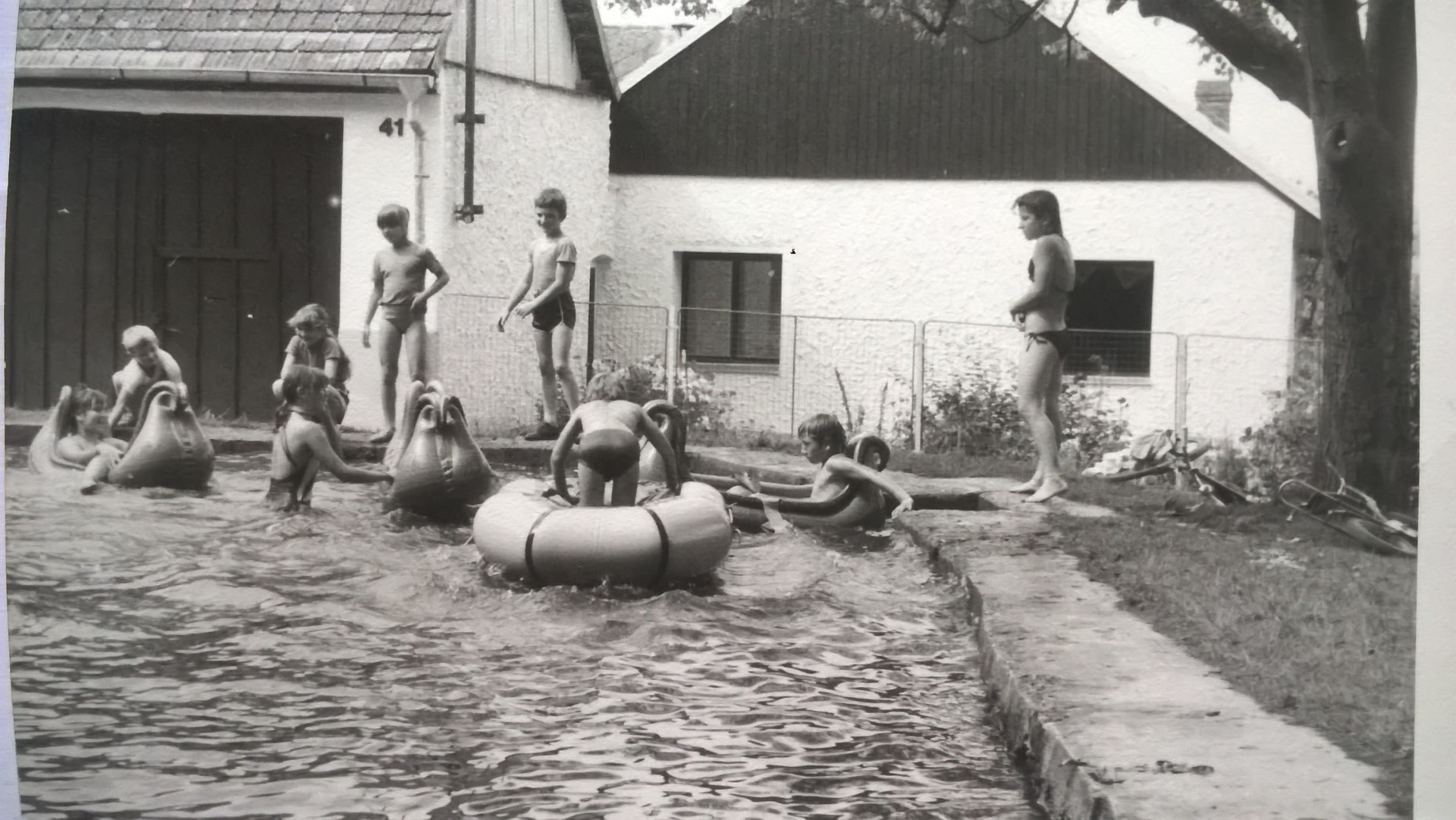A tady za námi ( nebo se dá i říct teprve před námi ) rybníček, který se právě opravuje. Někdy kolem roku 1989